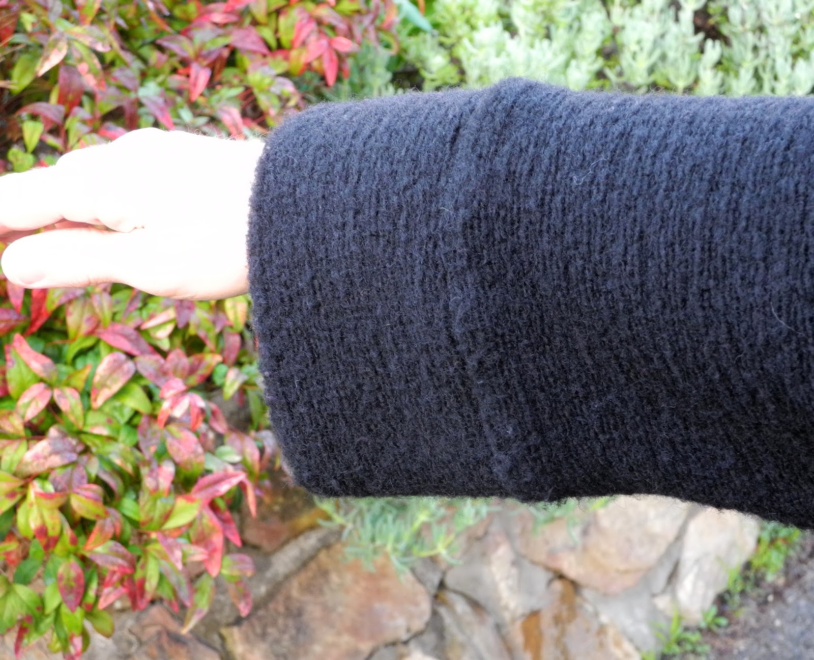 Another change I made to the pattern was to finish off the sleeves with bands. The pattern says to sew a deep hem and then turn back to form a cuff. This fabric was very bulky and that would have been four layers in the cuff. I cut about 18cm off the length of the sleeves. I folded the off cut in half forming a band and then reattached it to the sleeve. This had a similar look to a cuff without the extra bulk.